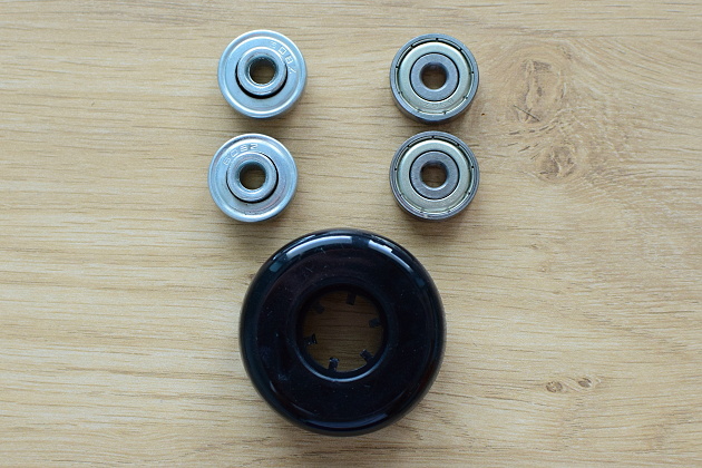 Výměnu ložisek lze provést pouze u koleček s kuličkovými ložisky. Není však třeba mít žádné speciální nářadí.