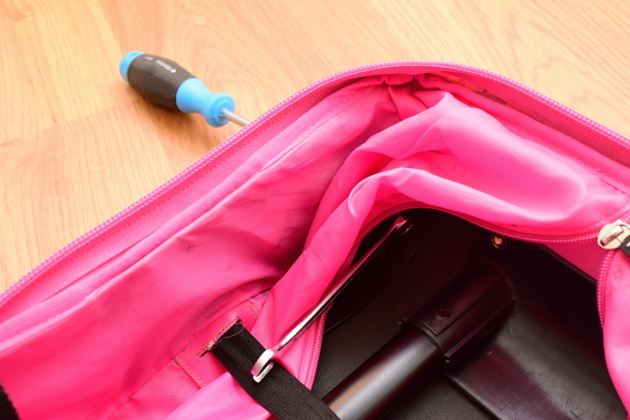 Vnitřní stélku vrátíme do původního stavu zapnutím zipu nebo zašitím rozpáraného místa. Kufr vyzkoušíme a pokud nikde nic nedrhne, můžeme vyrazit na cestu.